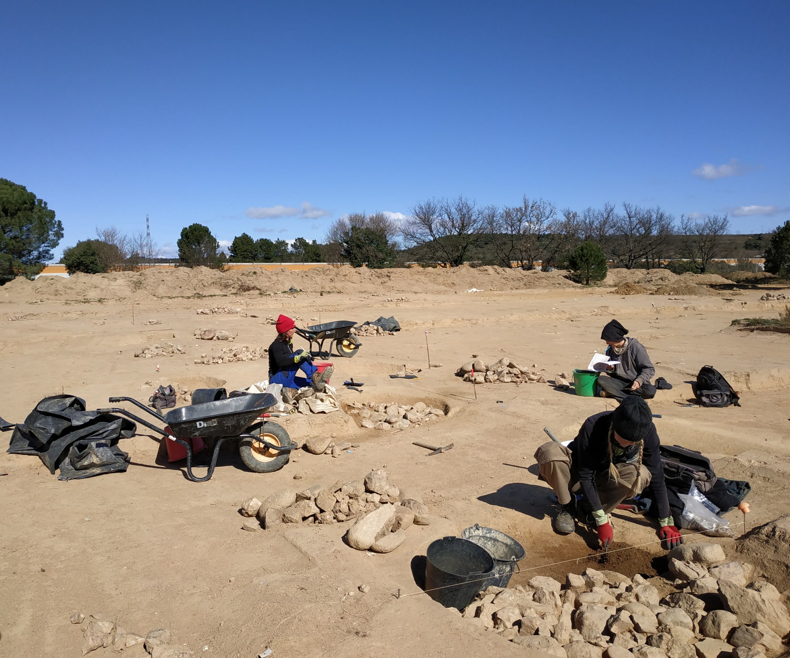 Le site s’est avéré très riche et dans un excellent état de conservation car l’absence de travaux agricoles destructeurs a évité la détérioration des vestiges. Ont été trouvé de multiples foyers, des fosses, des trous dédiés à l’implantation de poteaux, des céramiques et un important mobilier lithique.