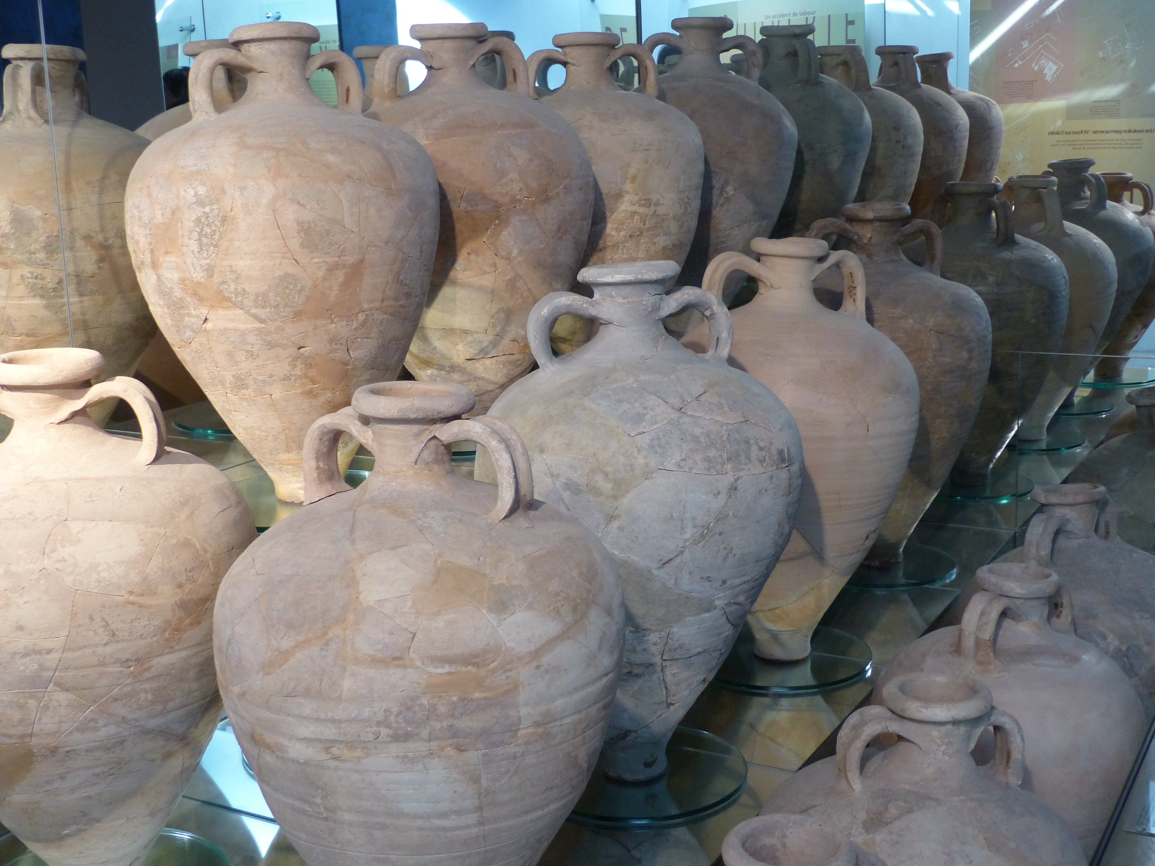 Des fours de différentes tailles ont été découverts, dont un pouvant contenir jusqu’à 1000 amphores. Après séchage, la cuisson des poteries durait 2 à 3 jours, à une température voisinant les 1000°. En guise de thermostat, on se fiait à la couleur de l’argile. Plus elle était rouge, plus la cuisson était à son maximum. Il fallait ensuite un refroidissement progressif afin d’éviter « la casse »